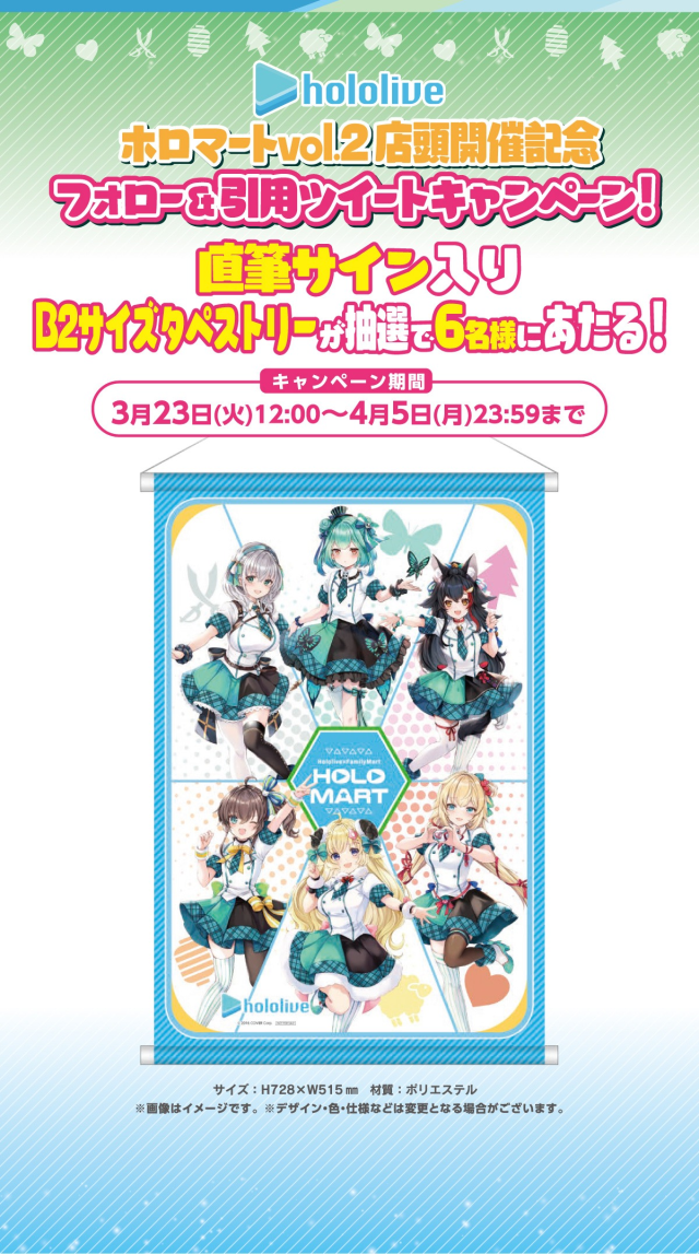 這次還舉辦了線上 Twitter 活動,將會在活動開始在日本全家官方推特上發布指定貼文,抽出 6 位幸運的粉絲得到「親筆簽名 B2 掛軸」,相信不論是單推的還是 DD 的各位,都想要入手的啦 XD。