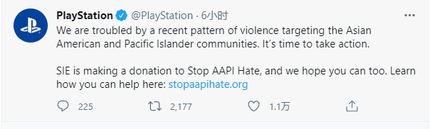 PlayStation近期展現了支持黑人的一連串社會運動,也基於此理念推行亞裔美國人的公平正義,並在官方聲明中宣示「針對亞裔美國人和太平洋島嶼居民所遭遇的暴力案件感到憂慮,我們將採取行動向Stop AAPI Hate捐款,我們希望你也能一起支持」,隨後附上連結。