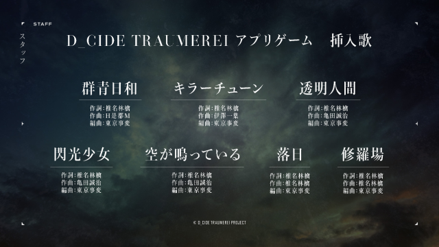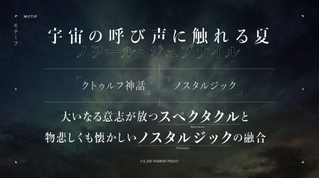 確定於今年夏季播放動畫作品,以 3DCG 打造,作品的製作團隊也一併公布。可以發現這次《D_CIDE TRAUMEREI》的準備是非常齊全的,幾乎一次到位的籌畫讓人不禁期待這部作品的到來。