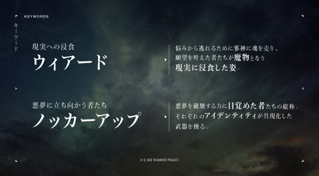 故事環繞在侵蝕現實的怪異魔物與目標擊倒這些惡夢的人類 ( 被稱作 Knock Up )。