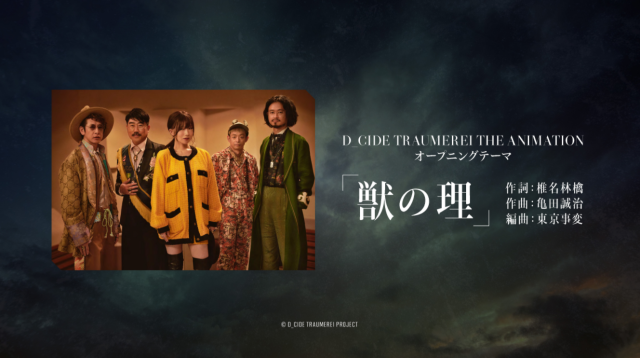更讓人吃驚的是,找來了人氣樂團「東京事變」演唱動畫主題曲「獸之理」,由團隊清自作詞作曲,更是 「東京事變」 十多年來少數替動畫製作的歌曲,可以想見《D_CIDE TRAUMEREI》的來頭真的不小阿。