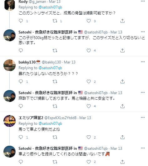 satoshi獸醫最後在推特聲明:「透過這次的聲浪他明白社群的困難性,人們總會聯想到更多事情,但我僅希望為獸醫行業做出正確且有用的貢獻。」而真正在底下與獸醫詢問儀器、麻醉甚至美國養馬生態的人則居多,可以說是非常健全的正向風氣。