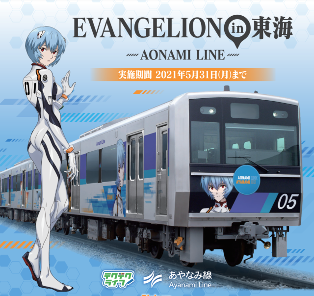 位於日本名古屋的鐵道路線-青波線 ( あおなみ線 ) ,是由名古屋站連結至市內金城埠頭車站,由名古屋臨海高速鐵道所擁有的鐵路路線。近日因為慶祝《新·福音戰士劇場版:│▌》上映,青波線鐵道與其展開合作,以諧音的方式將青波線 ( あおなみ線 ) 轉換為シン・あやなみ線 「綾波線」,並有專屬的電車將會在 2021 年 5 月 31 日前行駛。