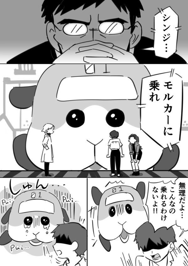 大家一定還記得,最一開始碇司令要求真嗣坐上初號機的經典橋段吧!而近日就有日本推主ごえたむ(@goetamu)就將這真嗣第一次坐上初號機的這幕,利用漫畫的方式,將初號機換成了天竺鼠車車,更可愛的是車窗上還有01的字樣XD
