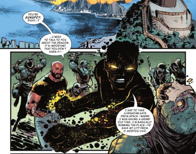 這七個城市紛紛出現在地球原先重要城市的上空,其中包括在巴西的里約熱內盧,鐵拳俠的好友盧克凱奇(Luke Cage)便被傳送到當地來抵抗進攻。他也在當地遇見了意料之外的隊友:「太陽黑子」羅伯托·達·科斯塔(Roberto Da Costa)。
