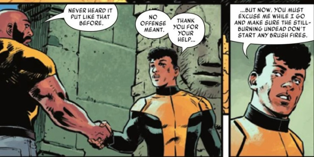 雖然在這只是一個瞬間,但證明了漫威宇宙中不同角落的英雄仍有合作的可能。特別是現在的太陽黑子是異能島Krakoa上重要的變種人之一,也是即將到來的X戰警揀選的候選人,這次小小的合作,以及兩人互信的過程都有機會讓其餘英雄看到繼續合作的曙光,至少可能可以不要這麼排斥變種人。畢竟,這座島一直以來就與其他英雄團隊的關係很不穩定──曾經惹怒瓦甘達,還與驚奇四超人吵起來。