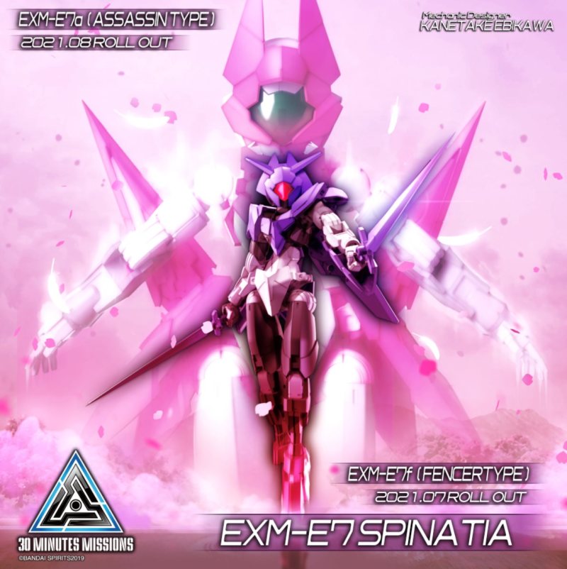 由日本 BANDAI SPIRITS 公司 HOBBY 事業部發行,具備快速組裝、便於改造特色,充分展現量產機魅力的原創組裝模型『30MINUTES MISSIONS』系列繼司比納帝歐後,日前再度發表第三勢力最新機體「1/144 EXM-E7 司比納帝亞 擊劍/刺客規格」預計於 2021 年 07~08 月發售的消息。