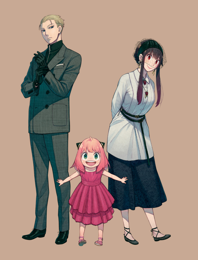 遠藤老師也繪製了《SPY×FAMILY 間諜家家酒》中三位主角-洛伊德·佛傑、約兒·佛傑與安妮亞·佛傑穿上 Dior 服飾的插圖,穿上時裝品牌的服飾是不是跟漫畫中的感覺不大一樣呢~