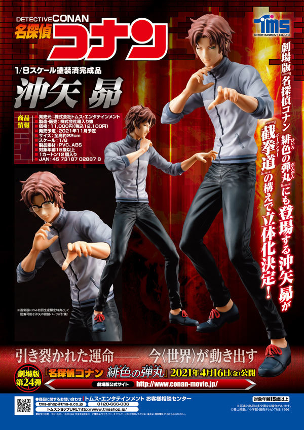 日本 TMS 公司,因應即將到來上映的劇場版《名偵探柯南:緋色的彈丸》,特別推出劇中人物「沖矢昴」(赤井秀一的另一個面貌)之 1/8 比例的立體人形商品,預計將在 4 月開放預訂,11 月發售。