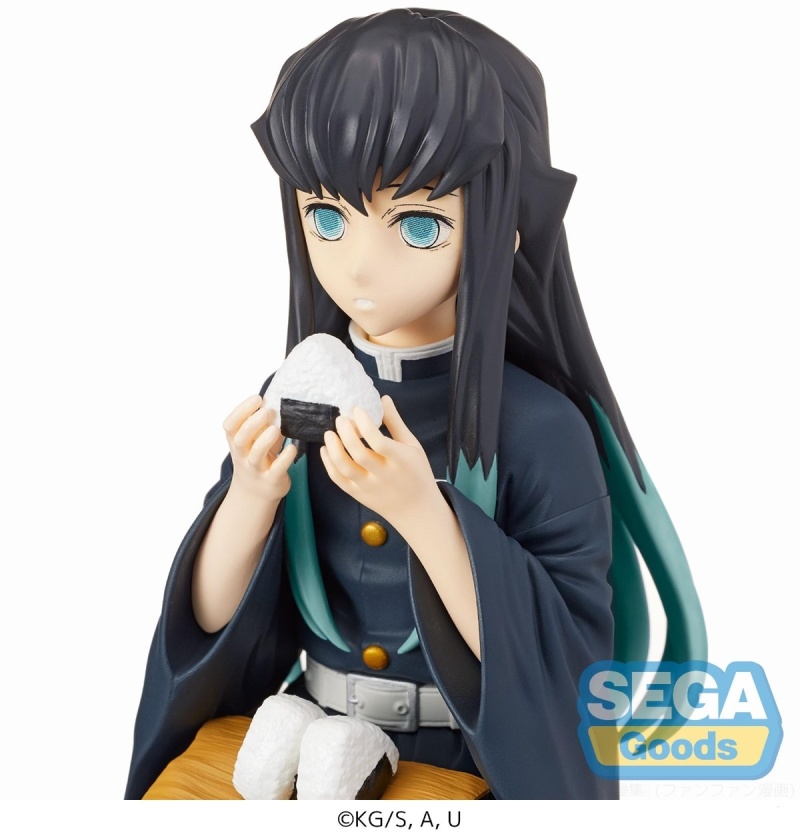 以坐姿為主題的 Premium Chokose 系列,本次發布「Premium Chokose 時透無一郎」坐姿FIGURE,還原時透無一郎黑色綠色漸層的長髮與朦朧迷離的(發呆)眼神,雙腳併攏的坐姿,雙手中捧著飯糰,剩餘的飯糰放在大腿上,呈現出淡淡黯然消魂的氣氛...細節塗裝也不馬虎,服裝的皺褶與質感都相當精緻~千萬不要讓無一郎一個人獨自吃飯糰,和夥伴們一起排排坐用餐吧!