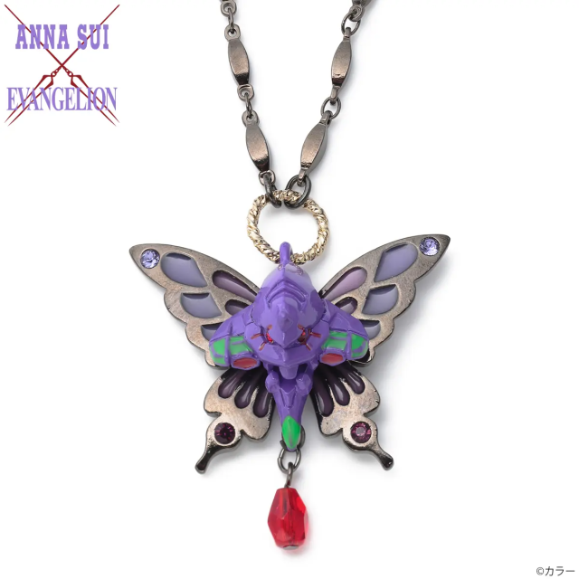 以初號機的頭顱結合 ANNA SUI 的招牌紫色蝴蝶製作而成,華麗的樣貌搭配下方懸掛的紅色寶石,非常具有識別度。售價為 22,000 日圓。