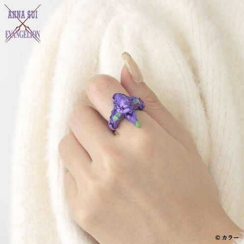 以初號機的樣式製作,將身軀與頭顱製作成戒指的形狀,並結合 ANNA SUI 的玫瑰常春藤在一起,表達出與品牌的融合。售價為 17,600 日圓。
