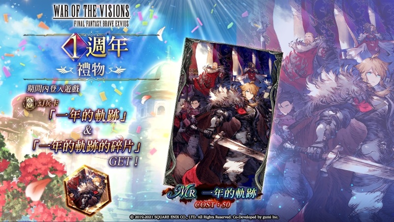 gumi Inc. 今對外宣布,由發行商SQUARE ENIX®以及其合作夥伴開發商gumi Inc.聯手推出的策略RPG手機遊戲《WAR OF THE VISIONS™ FINAL FANTASY BRAVE EXVIUS®》國際版(以下簡稱《WOTV FFBE》國際版),遊戲正式邁入1週年!遊戲至今全球下載數已突破2,100萬,誠摯邀請所有玩家一同歡慶以及參與紀念活動!此外為慶祝遊戲1週年,同時舉辦《FINAL FANTASY X》(以下簡稱《FFX》)聯合活動,即日起至5/5活動時間結束止,只要登入遊戲就可免費獲得玩家喜愛的《FFX》主角英雄『提達』,此外還有一系列與眾不同的專屬任務,以及豪華獎勵等著玩家!