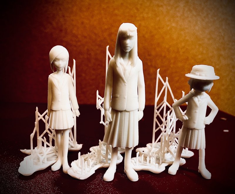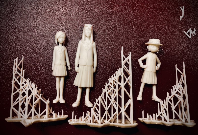 海洋堂「DGK 淺草綠/水崎燕/金森沙耶加 三人組」1/35比例3D列印模型,將劇中三位可愛高中生主角立體化!以約5公分內的小尺寸呈現,材質採用光聚合樹脂一體成形,帶有3D列印的支撐架,須自行處理後接連部分後再進行塗裝。簡單的制服造型不僅塗裝相對容易,三人有趣的身形比例擺放起來也精緻趣味~