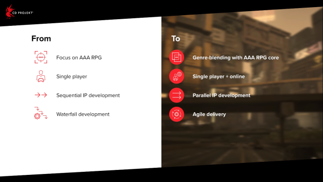 執行長Adam Kiciński表示:「我們曾暗示下一款3A大作是多人連線的賽博龐克遊戲,但我們重新考慮後,我們希望以更系統化與彈性的新方式把『在線內容』相互融入,我們不會只在專注一款大型遊戲的開發—這種在線技術將整合到未來的遊戲開發中。」