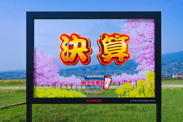 日本遊戲公司「KONAMI」出品的派對遊戲《桃太郎電鐵》,其最新作《桃太郎電鐵~昭和 平成 令和也是基本款!~》目前依然是任天堂Switch最熱門的遊戲之一,而有玩「桃鐵」系列的玩家們都知道,在遊戲進行到最後階段時會進行各個玩家的資金統計,這稱之為「決算」,其中決算畫面的背景為富士山,而KONAMI在今天(4/1)愚人節就為此讓這畫面在現實中出現。