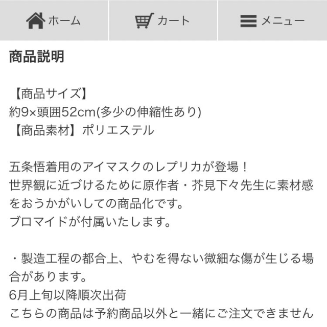 動畫公司 MAPPA 今日在推特上公布了自家線上商城將開賣人氣動漫作品《咒術迴戰》五條悟的「眼罩」,更標榜「最貼近原作還原度」,目前可以於 MAPPA ONLINE SHOP 預購,售價為 1,980 日圓,預計為 6 月上旬將會陸續出貨。
