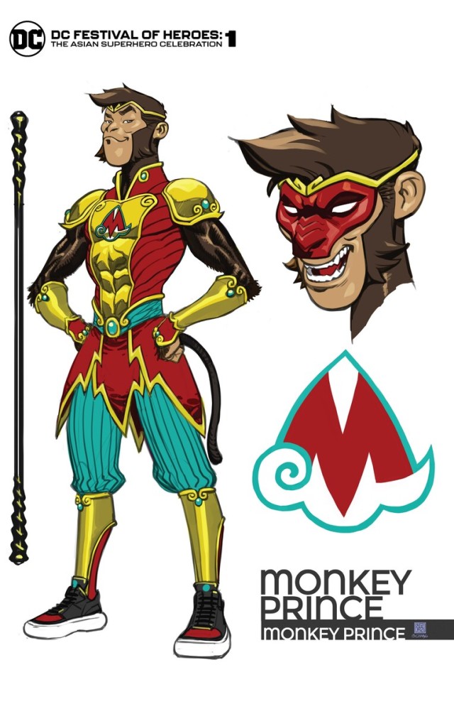 除此之外,DC Comics也在這一次即將在5月發行的100頁巨型漫畫《DC FESTIVAL OF HEROES: THE ASIAN SUPERHERO CELEBRATION》中,推出了全新亞洲英雄「美猴王(暫譯,Monkey Prince)」,並且公開了該角色的草圖設計及首張角色造型美術設計圖。