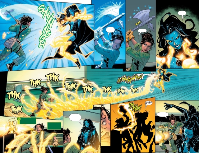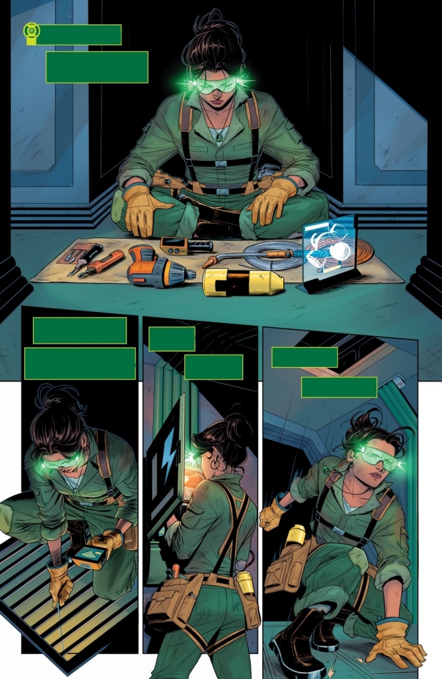 駐守於此處的綠燈戰警便是近年來 DC 漫畫大力推廣的潔西卡‧克魯茲(Jessica Cruz),不幸的是綠燈軍團力量完全失效,能量燈戒變成了純粹的裝飾品,但潔西卡不打算就此屈服,憑著軍團訓練、主場優勢與鬼魅身手,迅速運用陷阱與恐懼氛圍放倒了兩位辛納托軍團執法者,頗有蝙蝠俠在追捕獵物時的氣勢。