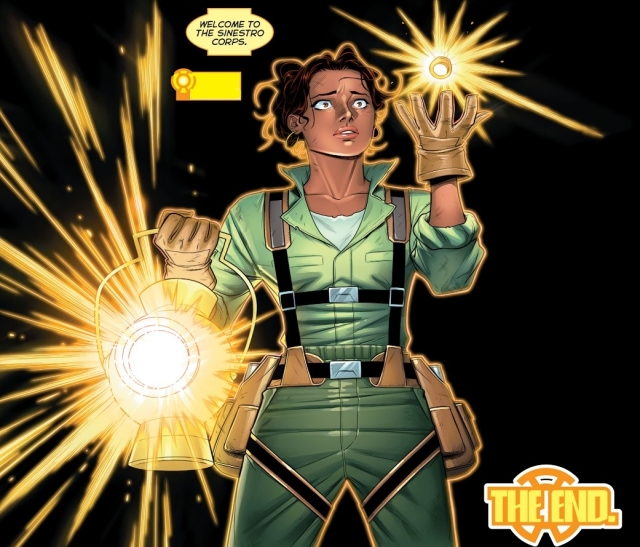 最後潔西卡手持原子斧與麗莎‧德拉克正面對決,然而儘管潔西卡英勇奮戰,依舊難敵靈活運用黃燈戒的麗莎‧德拉克,就在即將遭到麗莎‧德拉克的殘虐毒手之際,黃燈能量電池認同了潔西卡面對恐懼的能力,更認可潔西卡具備將恐懼化為武器、加諸於眾人身上的力量,先前被潔西卡擊倒的黃燈執法者,手中的能量戒飛入她手中,潔西卡正式成為辛納托軍團成員,故事就到這裡結束。