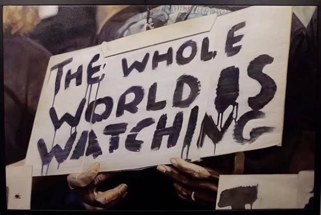 第四集的標題「The Whole World is Watching」意思是「全世界都在看。」暗示旗幟粉碎者的動向眾人注目。但這一句話起源於1968年,反越戰、反暴力示威者在芝加哥康拉德希爾頓酒店外抗議,遭到警察毆打和逮捕,此時他們對眼前這群世界警察高呼「全世界都在看。」這句話至今仍被世界各地不同民運活動使用。有興趣的朋友可以去看Netflix的改編電影《芝加哥七人案:驚世審判》。