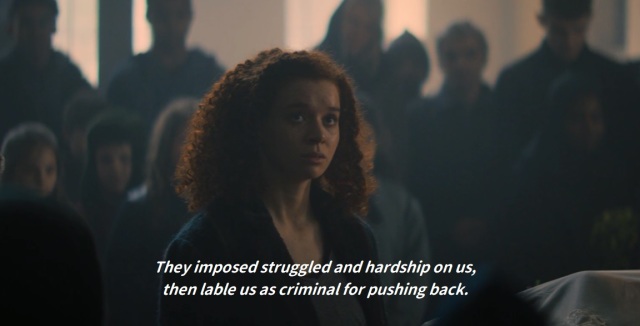 當山姆希望能幫助旗幟粉碎者時,卻被以「我們不信任外人」拒絕。原來GRC在成立時承諾會給予補助,過了半年後卻只等到絕望的空頭支票。我必須稱讚這部影集真的比想像中還要現實,檯面上的政客總是官腔官調地承諾改善,最終老百姓得到的是更多的失望與悲劇。想想我們才剛經歷的太魯閣悲劇,抖出了這種官僚體制背後多少「房間裡的大象」,這句台詞遠比任何人想像的更加現實、諷刺。