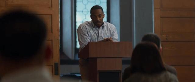 山姆希望能和卡莉好好溝通,因為他自己曾經主持過創傷互助協會,也就是我們在《美國隊長:酷寒戰士》中看到的。