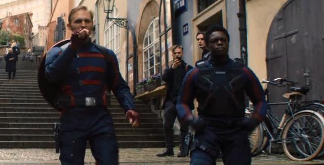 朵拉護衛隊用了史蒂夫在《美國隊長:酷寒戰士》電梯戰中的踩盾招式,我們在《黑寡婦》的預告中也看到模仿大師模仿了這一點。