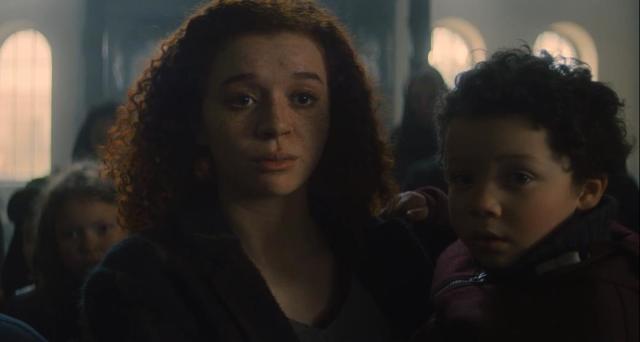 另外,這場戲有個有趣的細節,這裡找了很多業餘兒童臨時演員,有些甚至年紀小到搞不清楚狀況,例如卡莉手上抱著的小男孩,就被發現好幾次看向鏡頭。