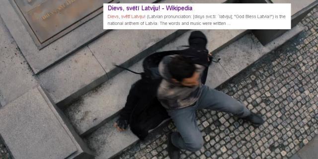 29. 另一個諷刺的細節是,當尼可慘死在自己「偶像」的盾牌之下,身後的雕像寫著「天祐拉脫維亞」(Dievs, svētī Latviju) 這句話是拉脫維亞的國歌歌名。值得一提的是,因為疫情的影響,這場戲實際上是在布拉格拍攝的。