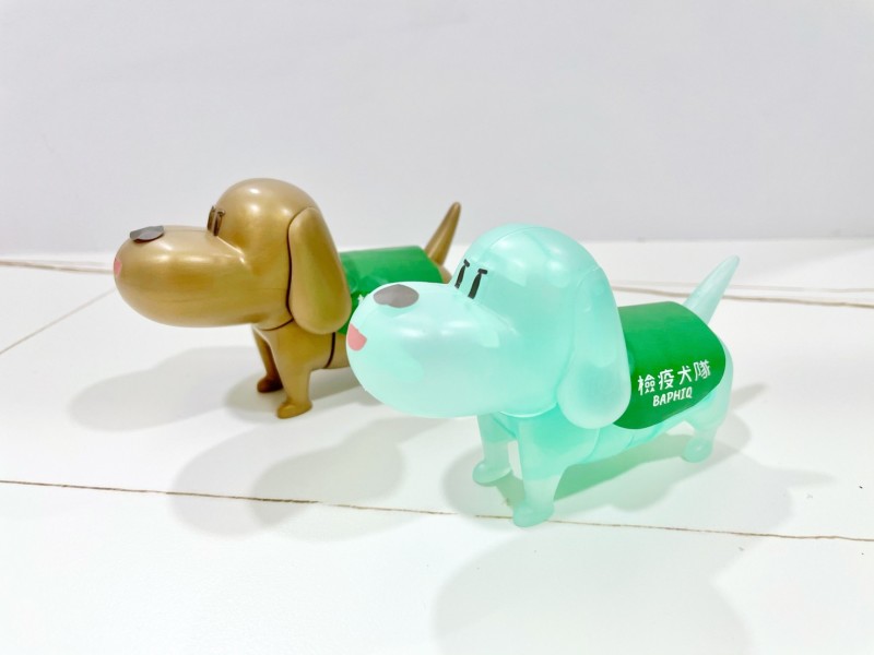 由 FIGHT 組合而成活力四射的貝果,簡單又可愛~在機場不能摸的檢疫犬,這次不只可以摸個夠,還可以帶回家收藏啦!喜歡貝果的粉絲們不只要一次收兩色,更可以一組拼成貝果,一組完整 FIGHT 放在貝果後面~更強烈呈現護國神犬「FIGHT!為全民守護國門!」的氣勢!也讓收藏櫃更豐富~