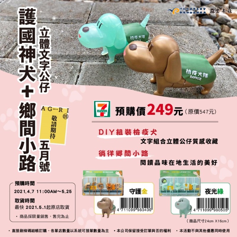 而這款超可愛的「檢疫犬立體文字拼圖公仔」於 2021 年 4 月 7 日~5 月 25 日,限時限量在全台 7-11 門市限量預購中,只要直接下載圖片到 7-11 掃條碼即可預購!數量有限,還不快點手刀搶起來!