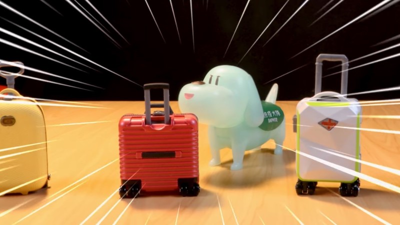 ▼背板是貝果工作的機場場景~要準備開始聞行李箱囉!