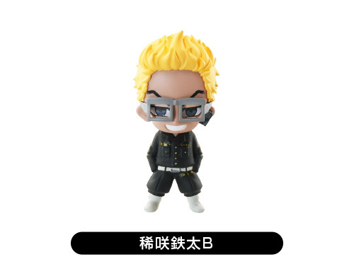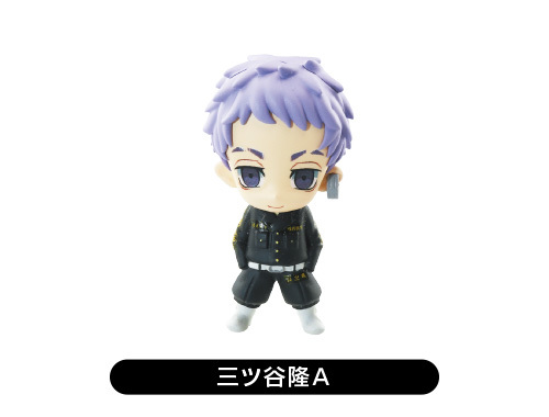 第二彈「東京卍復仇者 迷你公仔2」盲抽盒玩,以約 5.5 公分的尺寸將劇中角色 Q 版呈現,陣容收錄有:松野千冬、三谷隆、林田春樹、稀咲鐵太、半間修二五位人氣角色,每款角色都共有A、B款兩種不同表情,並仔細還原角色們特徵的髮型、特攻服等,展現暴走族的熱血!