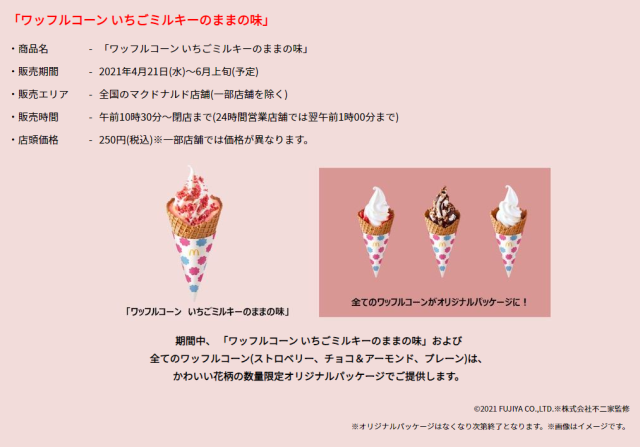 另外,甜筒冰淇淋的部分除了主打的「ワッフルコーン いちごミルキーのままの味」,麥當勞也一併推出了草莓、巧克力杏仁,以及原味冰淇淋等三種口味,好能在即將到來的炎炎夏日中,藉由充滿牛奶香氣的冰品來徹底消暑!