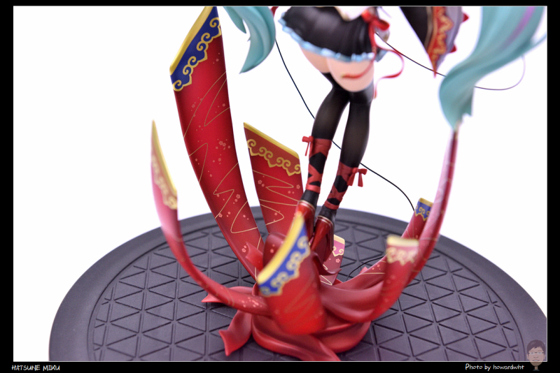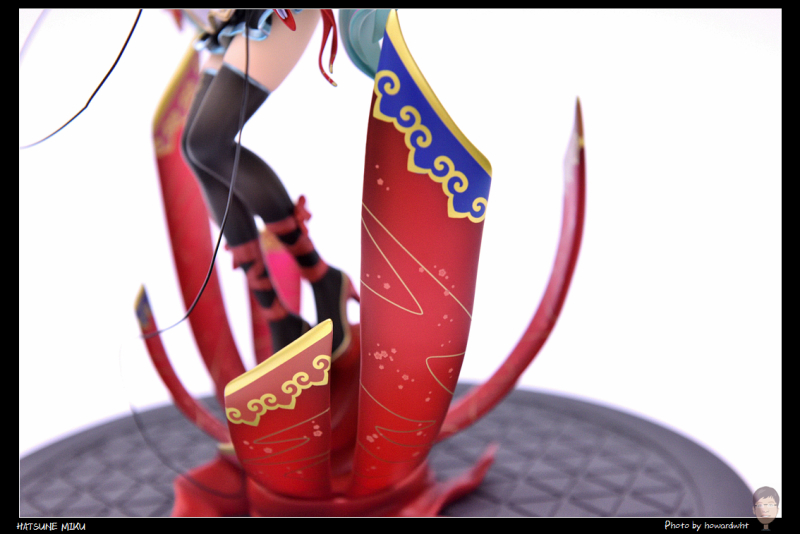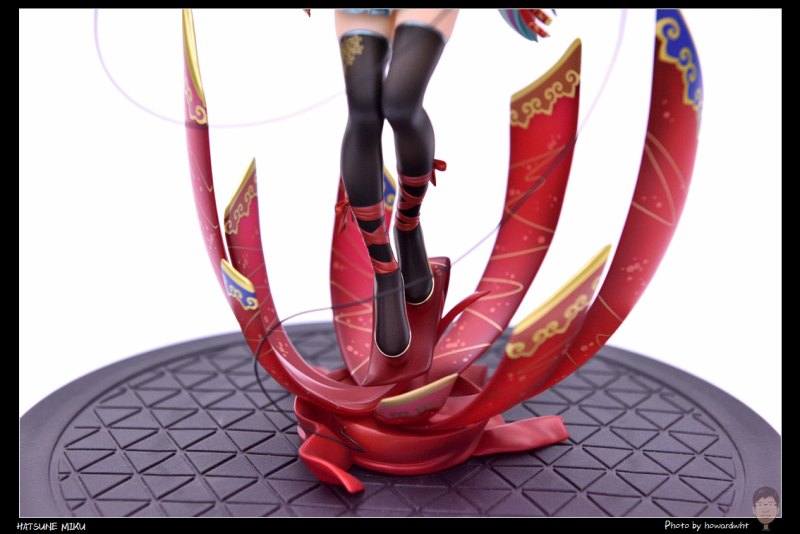 原畫的紅色絲帶是從上往下,但實體化後為了現實考量改為底座