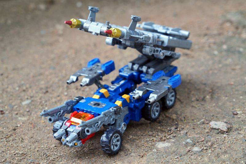 載具形態是能變成類似柯柏文的貨櫃車車頭,並連接後面的大基地。另外車頭拆開後還能再變成飛行戰鬥機器以及行走戰鬥機器,可玩性非常高,變身亦很簡易及有趣!之前的 Diaclone 產品都可以搭載互動,令其可玩性進一步提高!在人形戰鬥機器決戰模式下,可通過身體各個部位內置的武器來進行戰鬥。主武器是兩支 V-MAX 穿甲步槍,另胸甲可以打開及內置了導彈。