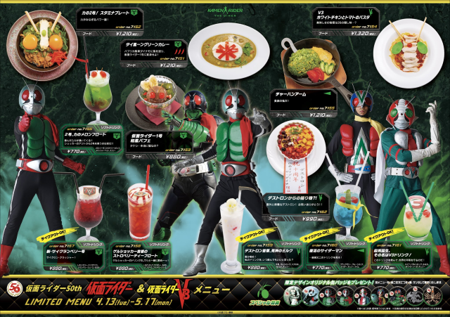 近日也公開了《假面騎士》&《假面騎士 V3》的期間限定餐點,為本次歡慶《假面騎士》系列 50 週年的第一波,回歸初代的感動。限定期間為 2021 年 4 月 13 日~5 月 17 日。