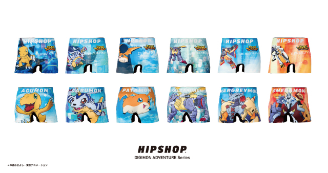 日本知名四角褲品牌HIPSHOP在日前於官方網站上宣布,將於1999年《數碼寶貝大冒險》無印版進行首度聯名,推出多達6種不同款式的四角褲,其樣式包含了亞古獸款、加布獸款、巴達獸款、戰鬥暴龍獸款、鋼鐵加魯魯款,以及奧米加獸款。