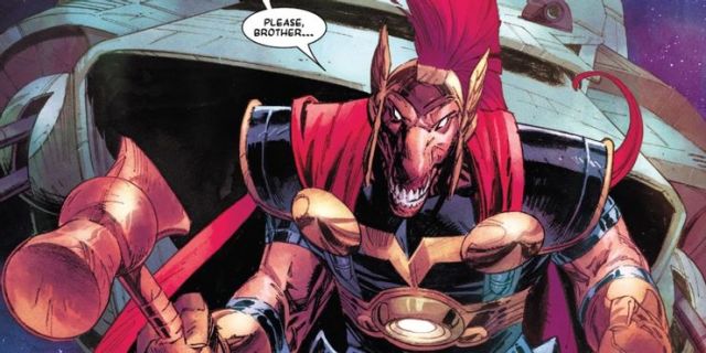 現在到了《THOR》#14中,戰鬥開始了,而唐納布萊克用體內的奧丁之力強行將「雷神之錘」妙爾尼爾(Mjolnir)找會到身邊。但是,另一位英雄在這之中證明了自己的價值以奪得雷神之錘的掌控權,那個英雄就是「馬臉雷神」貝塔雷比爾(Beta Ray Bill)。