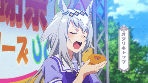 小栗帽是源自於日本的純種競賽馬匹 Oguri Cap 的馬娘角色,是不折不扣的大胃王吃貨。在祭典上參加超級大胃王比賽,獲得冠軍,卻把獎品讓給了第二名,說自己參賽只是為了吃甜甜圈而已,更可怕的是剛參加完比賽又開始吃甜品了 XD。