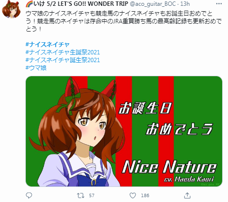 《賽馬娘》遊戲的風靡讓全世界更多人認識「賽馬文化」,甚至一掃賭馬只是賭博的迷思,今天(4月16日)是「優秀素質」(Nice Nature)的生日,作為前JRA團體中最長壽的公馬,今年已經是33歲高齡,現於渡邊牧場悠哉度過第20個養老春天,引來許多玩家和馬迷祝賀。
