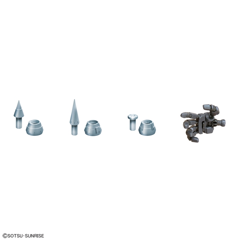 1/100 MS尖刺&全指可動手掌(吉翁系)則有適合吉翁系機動戰士使用的一對全指可動手掌「EMOTION MANIPULATOR SP」、具備精密細節的三種尖刺零件各 6 個,兩款套件皆為 1/100 比例,用來改造相當方便!