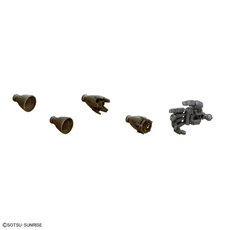 1/100 MS推進噴嘴01&全指可動手掌(連邦系)套件中包含適合地球連邦軍機動戰士使用的一對全指可動手掌「EMOTION MANIPULATOR SP」以及四種不同造型的推進噴嘴各 4 個。
