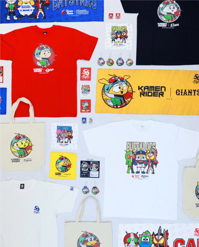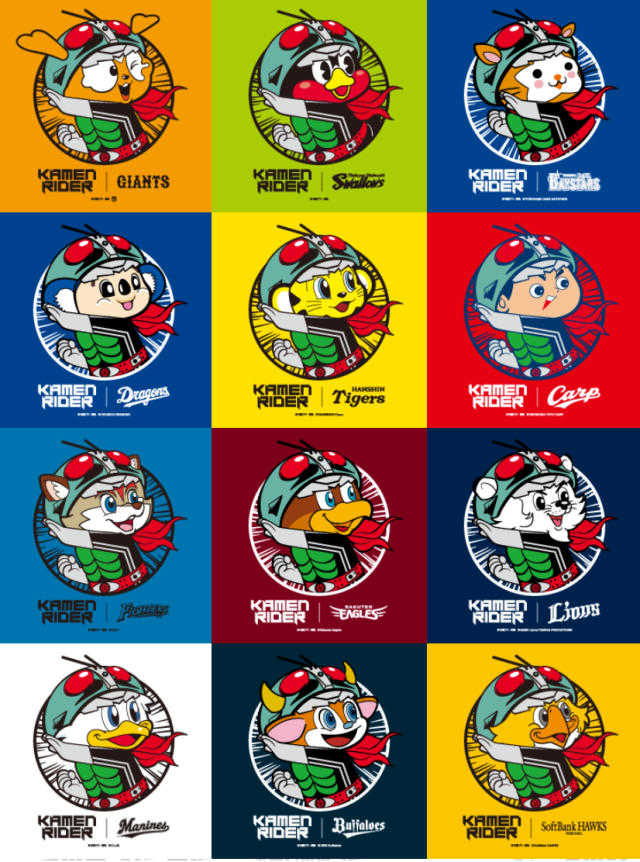 本次視覺圖採用假面騎士一號的經典變身姿勢,搭配各隊的吉祥物製成,不論是喜歡《假面騎士》還是日本職棒自己支持的球隊,相信這次合作商品都非常值得收藏,尤其事逢《假面騎士》 50 周年 ~ 喜歡的朋友千萬不要錯過了 !