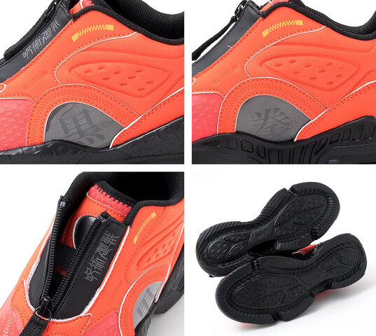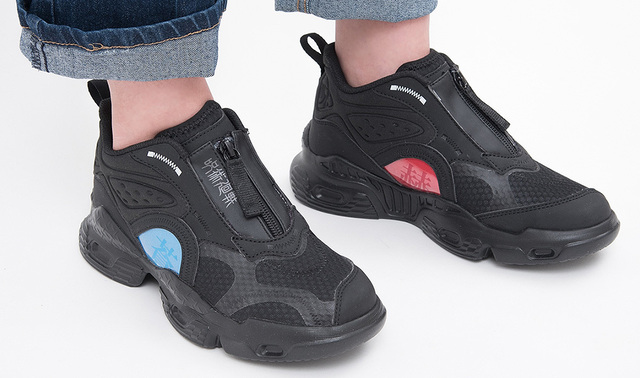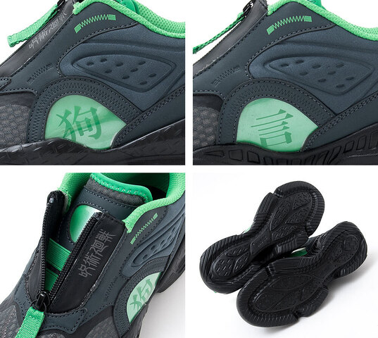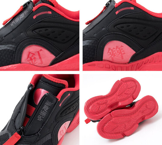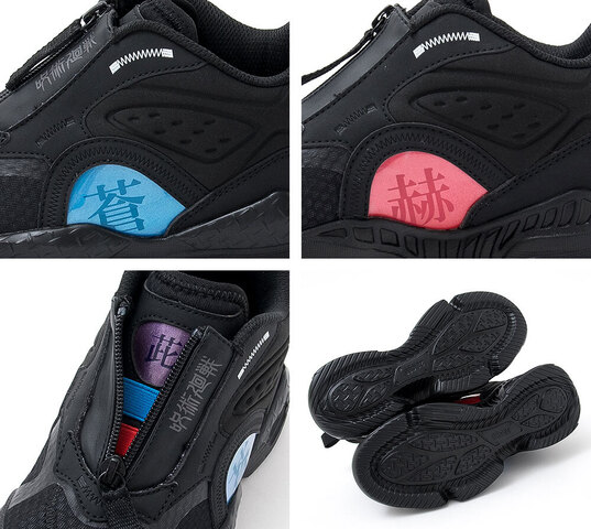 本次推出鞋款以運動鞋為基底,大底採用 EVA 避震材質,運動方面無須擔心。分別推出六位角色-虎條悠仁、伏黑惠、釘崎野薔薇、狗卷棘、七海建人與五條悟。每款鞋子上都有附上各角色代表的文字,配上專屬的配色,以不需綁鞋帶的方式穿脫,讓小孩子可以更方便的穿上鞋子。