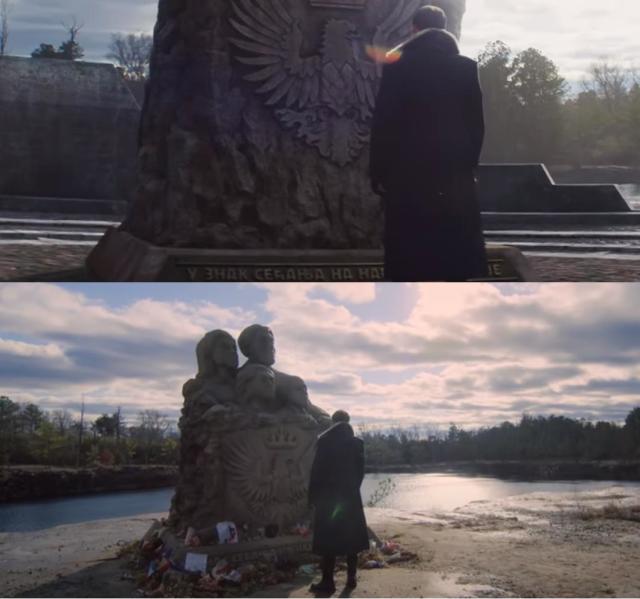 上級趁亂脫逃的澤莫,回到了家鄉蘇科維亞,悼念自己在奧創大戰無辜犧牲的親人。紀念碑上可以看到一大面的蘇科維亞國旗,而《美國隊長:英雄內戰》的主題音樂也再度響起。值得注意的是,預告中這一幕紀念碑四周都有不同紀念的花束和物品,正片中卻移除了。可能代表蘇科維亞原本也會被取消的病毒劇情所波及。