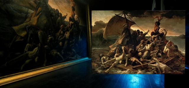 畫面來到馬德里坡,雪倫卡特的畫廊中特意特寫的這張圖是《梅杜莎之筏》,描繪的是1816年法國「梅杜薩號」沉沒後,生還者奮力求生的場面。也暗指了旗幟粉碎者面臨四面楚歌的現況。