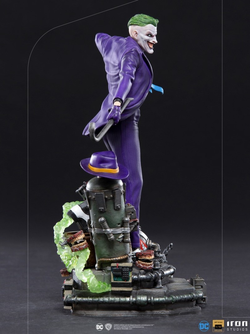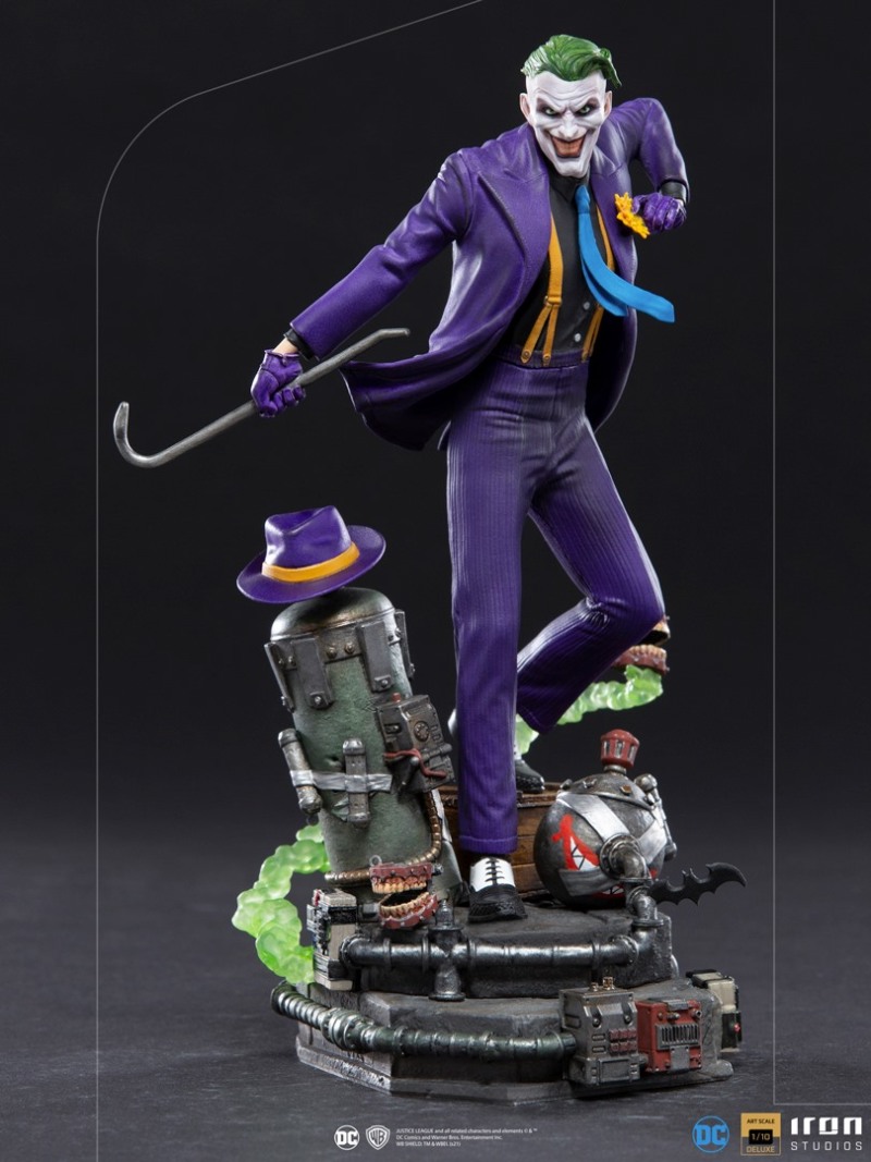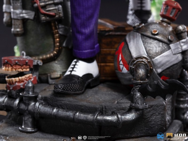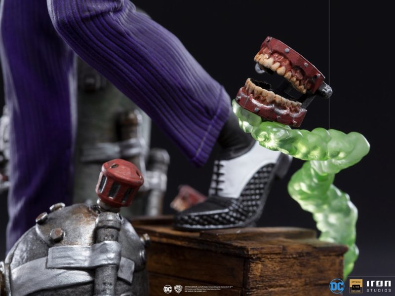 本作高度來到 23 公分,展現出小丑一手持握鐵撬、一手準備從左胸的花射出毒液的造型,服裝部分是經典的紫色西裝,不過在上衣部分是黑襯衫、黃吊帶、藍領帶的搭配,領帶與外套下擺的飛舞動感、褲子的皺摺都有逼真的表現,根據小丑起源之一「艾斯化工廠(Ace Chemicals)」為題設計的地台也十分搶眼,除了包含炸彈、假牙玩具、操控裝置、綠色毒煙......這些細節之外,管線與石造地板的材質差異也以出色塗裝加以表現。