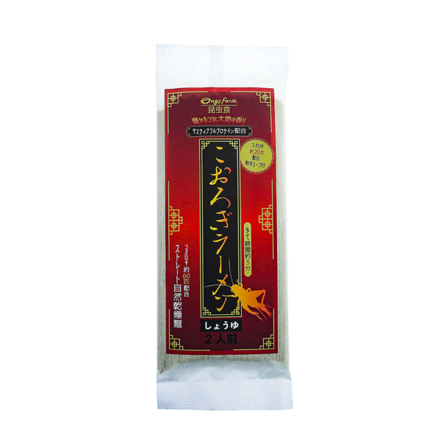 這款「昆蟲拉麵」醬油口味包含麵條與湯粉包,粉包具有類似魚粉的味道,還具有泥土的獨特香氣 ( ? ) ,標榜吃起來與一般醬油拉麵並無差異,煮好後只要放上自己喜歡的配料即可食用。「昆蟲拉麵」附有極高的營養價值,包含鐵、鈣、鋅、維生素B12、BCAA,Omega3和甲殼素。
